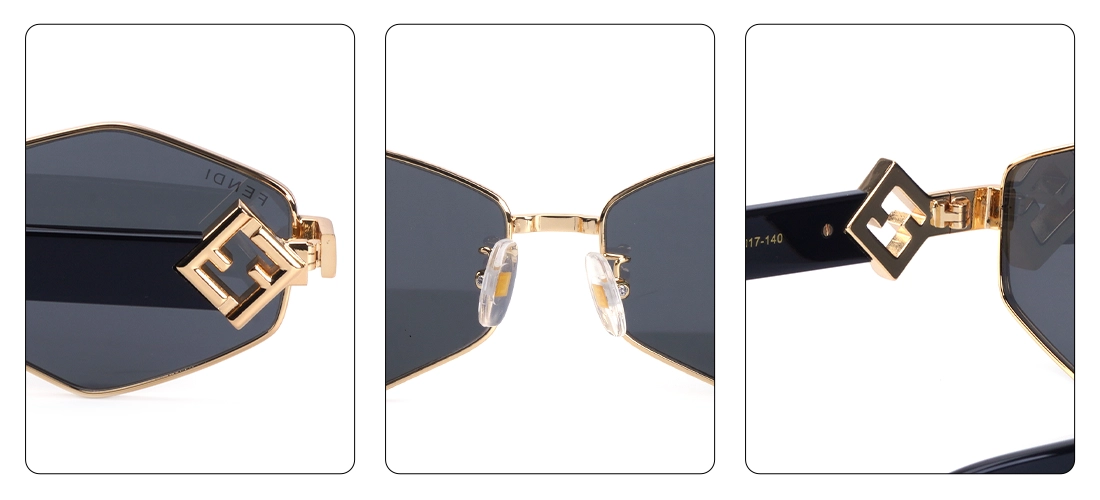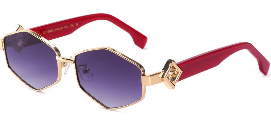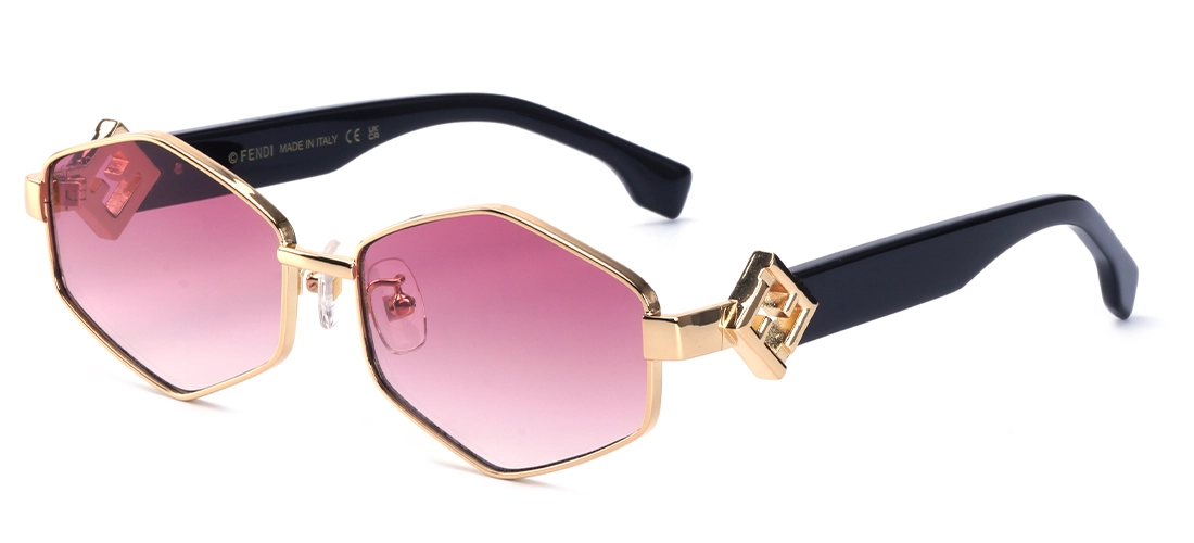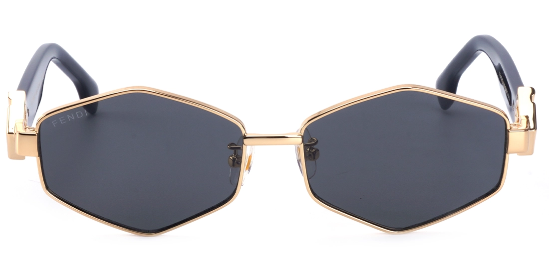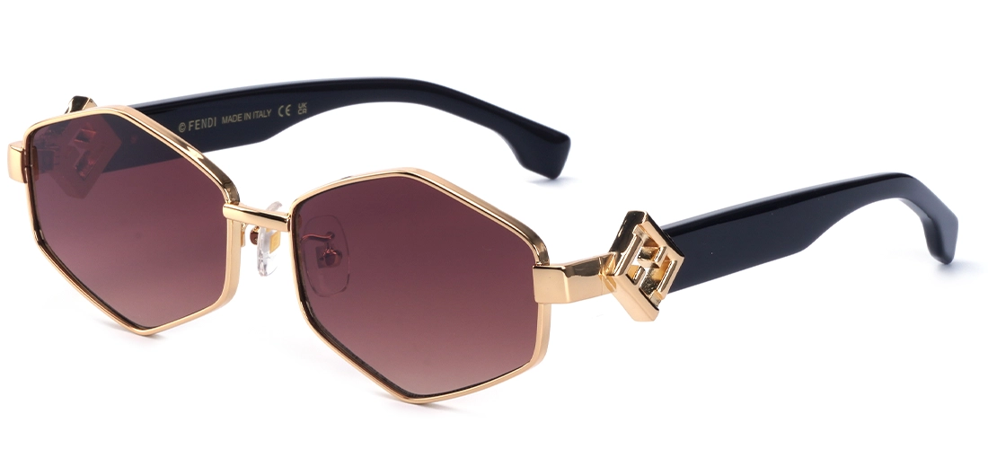 عینک آفتابی فندی مدل  FD40272 با سایز ۵۸ میلی‌متر (لنز ۵۸، پل ۱۷، دسته ۱۴۰ میلی‌متر) برای صورت‌های متوسط تا کمی بزرگ مناسب است. عرض کلی فریم حدود ۱۳۵-۱۴۰ میلی‌متر است و شکل هندسی شش‌ضلعی (hexagonal) با فریم فلزی طلایی و دسته‌هاوانا، ظاهری لوکس و متعادل ایجاد می‌کند.